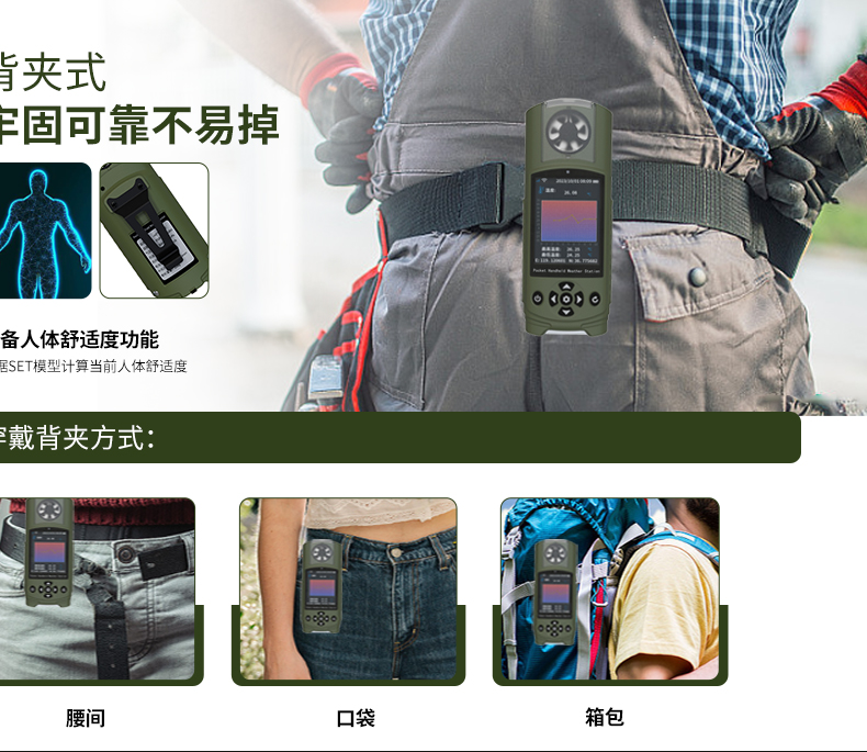 浏览次数:219袖珍手持气象仪,小巧便携超实用。一键测温、湿、压、风速风向,数据精准又快速。大屏显示易查看,还能存数据。低功耗长续航,户外用也方便。气象、农业、出行都用得上!