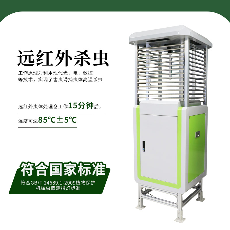 工作原理:利用光、电、数控技术实现诱虫、杀虫、分装等功能。在无人监管的情况下,可自动完成诱虫,杀虫,虫体分散,拍照,运输,收集,排水等系统作业,然后利用无线传输技术、物联网技术并实时将环境气象和虫害情况上传到指定农业云平台。